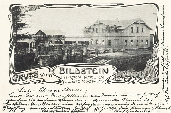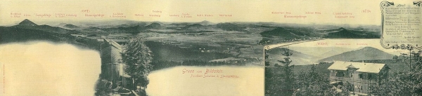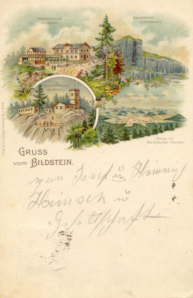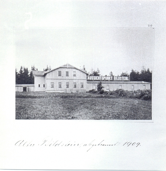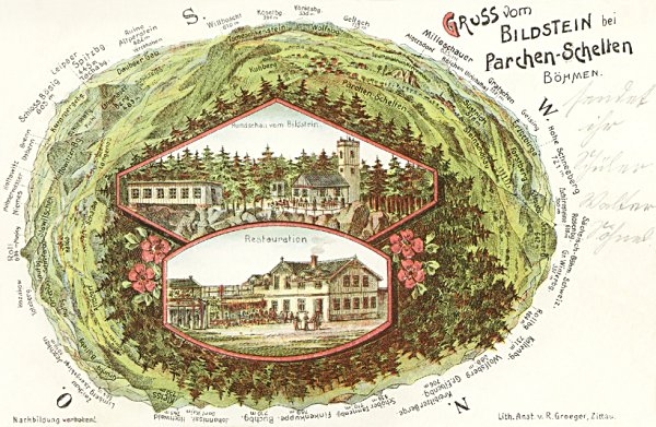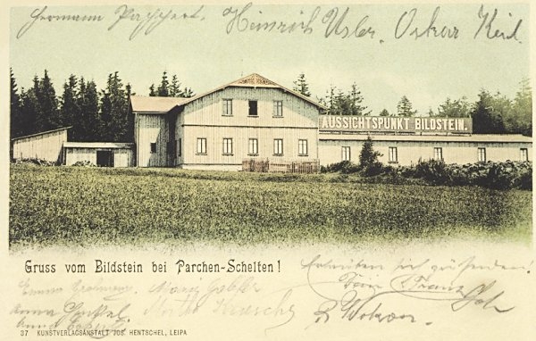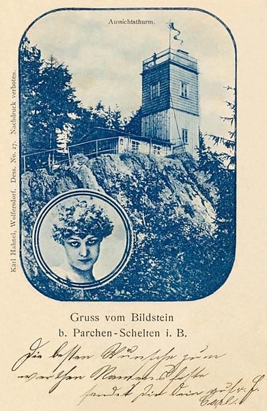 Již asi málo místních občanů z Práchně si bude pamatovat, že na nedalekém nevýrazném hřebeni směrem na Polevsko stávala kdysi výletní restaurace s rozhlednou. Místu se říkávalo Bildstein,česky Obrázek( na dnešních mapách je uveden název Na hřebenu)Obrázek vešel do povědomí turistické veřejnosti v roce 1891, kdy zde prácheňská sekce Horského spolku pro České Švýcarsko(sekce vznikla v r.1890 a jejím prvním předsedou byl Kajetán May) zřídila chatu s pohostinstvím. Zároveň na nejvyšším bodu hřebenu vybudoval dřevěnou, 6 metrů vysokou věž. Vzhledem k příznivé poloze několika turistických tras s Lužických hor a Českého středohoří bylo pohostinství vedené prácheňským občanem Antonem Rösslerem hojně navštěvováno a díky prosperitě mohlo být i rozšiřováno. Také věž byla vylepšena a zvýšena o další 4 metry, takže byl umožněn krásný výhled do všech světových stran.Bohužel restaurace za dobu své existence několikrát vyhořela(jen v letech 1899-1909 celkem třikrát) a tak bylo rozhodnuto po posledním požáru v r.1909 restauraci neobnovovat a postavit novou na kopci Kühlberg(dnes Vyhlídka). Rozhledna ,která zázrakem přežila všechny požáry,pak stála osamocena a rozpadla se několik let po 2.sv.válce. Dnes jí připomínají jen tyče od zábradlí zasazené do skály a pár starých pohlednic.Před několika lety, byla nedaleko od ní postavena telekomunkační věž, ale bohužel nikoho nenapadlo udělat z ní i rozhlednu.Byl by zde krásný výhled do kraje.